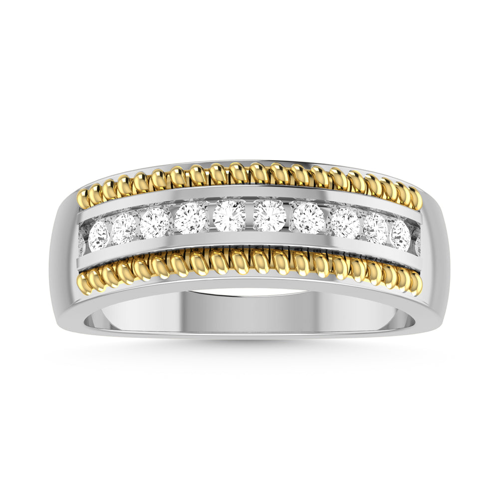 10K Two Tone Diamond 1/3 Ct.Tw. Mens Wedding Band