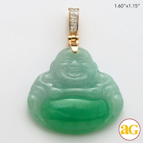 10KY JADE BUDDHA PENDANT - 0.10CTW DIAMOND BAILPRODUCT INFORMATIONMetal: 10kySTONE INFORMATIONClarity: 0