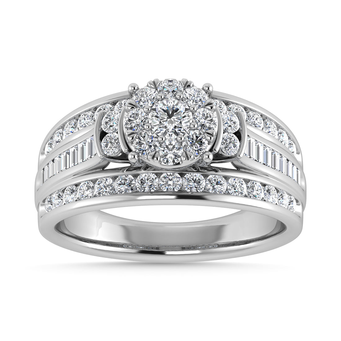 Diamond 1 Ct.Tw. Round and Tapper head Ring in 10K White Gold