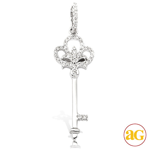 14KW 0.20CTW DIAMOND KEY PENDANT - FLEUR DE LIS DE