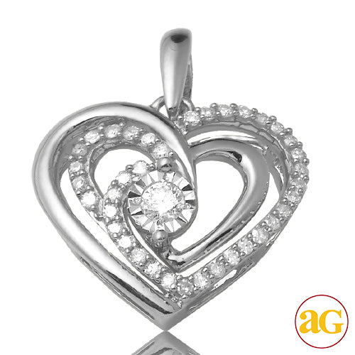14KW 0.15CTW ILLUSION DIAMOND DOUBLE HEART PENDANT
