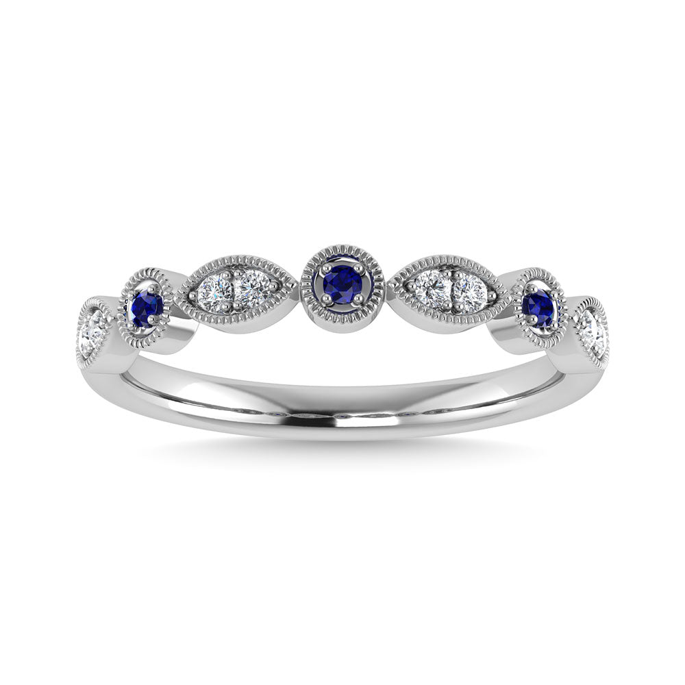 Diamond 1/8 Ct.Tw. And Blue Sapphire Stack Band in 10K White Gold