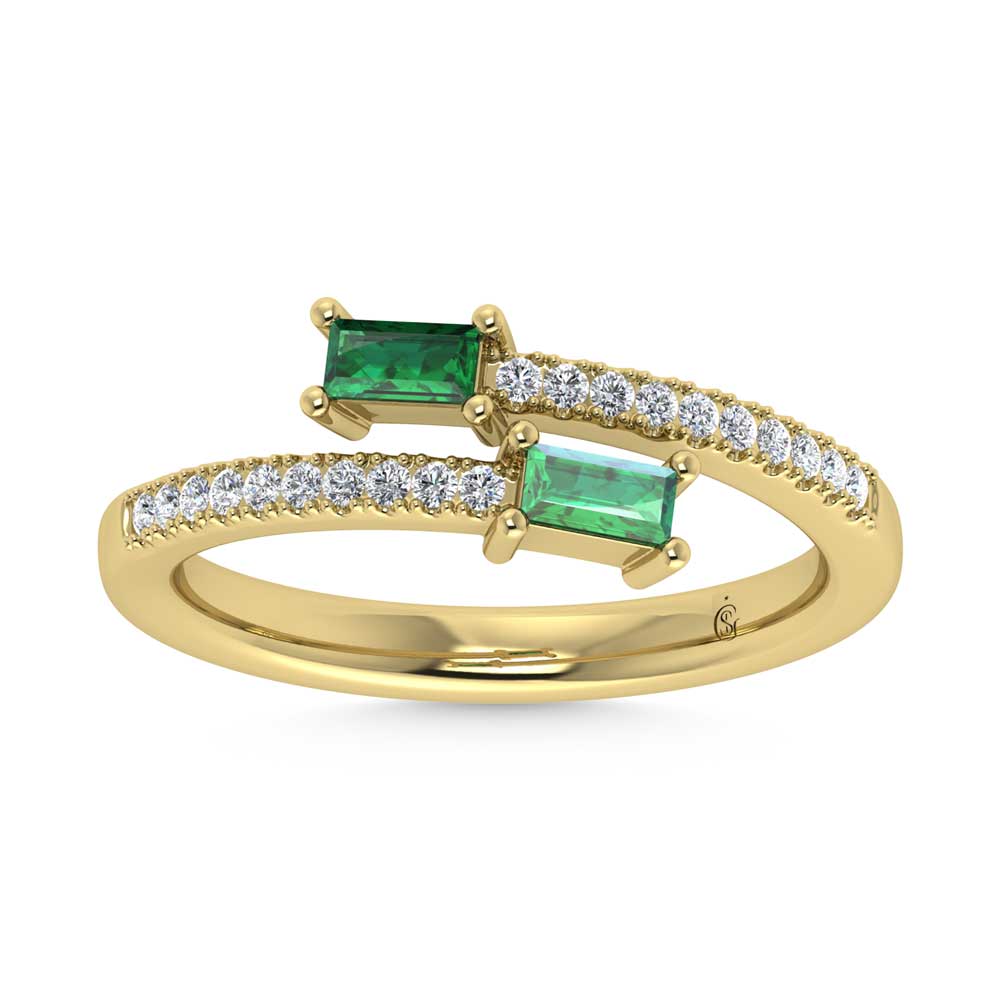14K Yellow Gold Emerald and Diamond 1/3 Ct.Tw. Curve Band