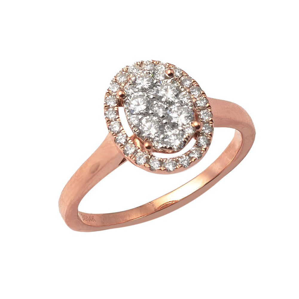 14KR 0.75CTW DIAMOND OVAL DOME CLUSTER RING WITH H