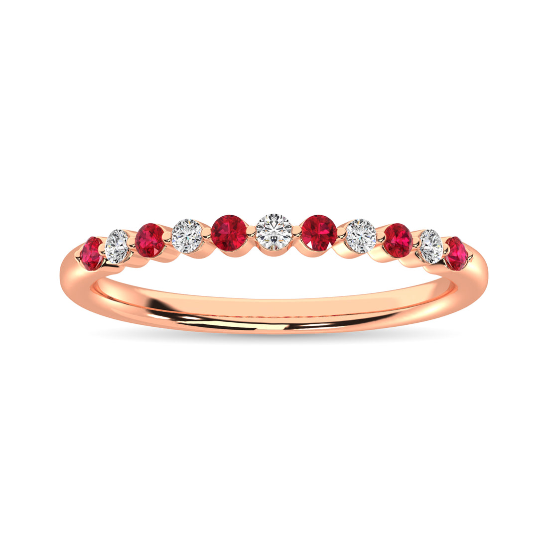 Diamond 1/3 Ct.Tw. And Ruby Stack Band in 14K Rose Gold ( 8 Diamond and 5 Ruby )