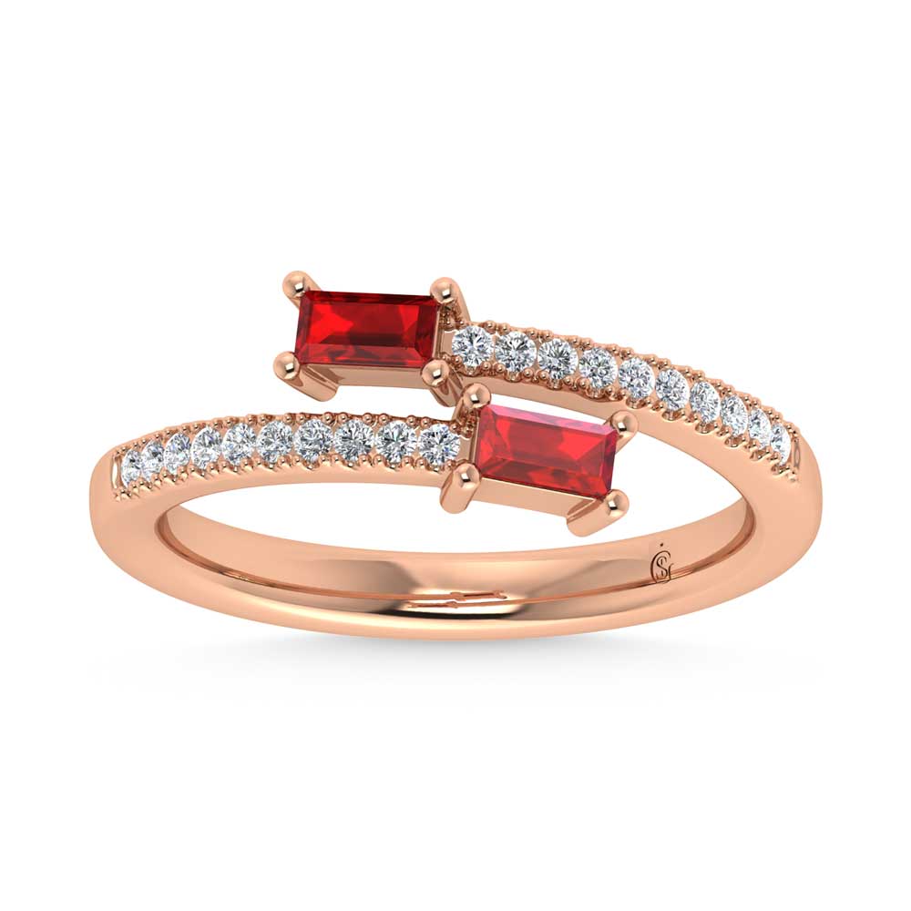 PRODUCT INFORMATIONMetal: 14k Rose GoldSTONE INFORMATIONStone Type: DiamondNumber of Stones: 43Shape: Round / Sbg RubyColor:...