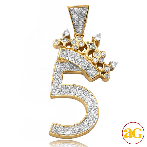 10KY 0.33CTW DIAMOND NUMBER WITH CROWN PENDANT - "