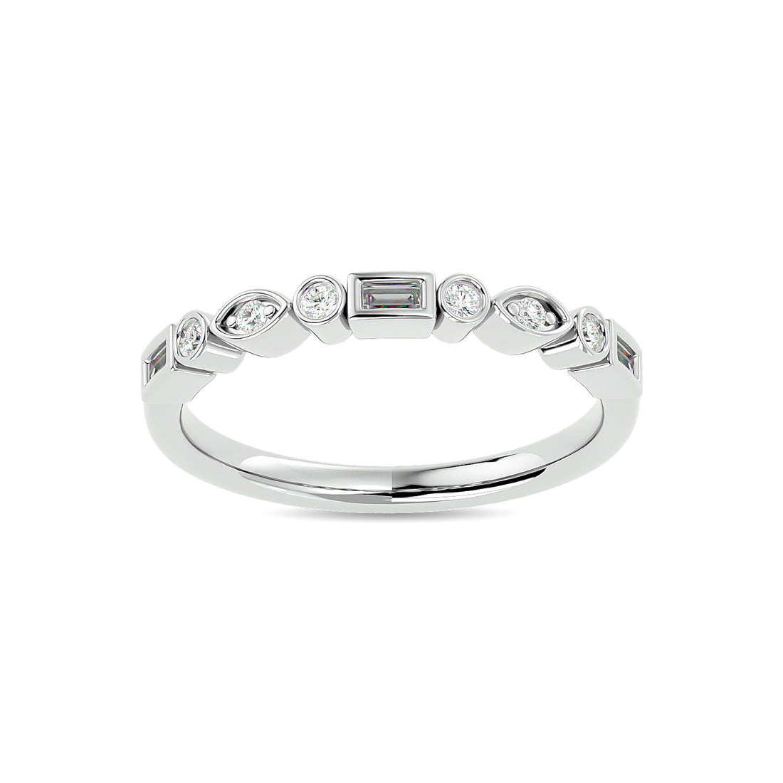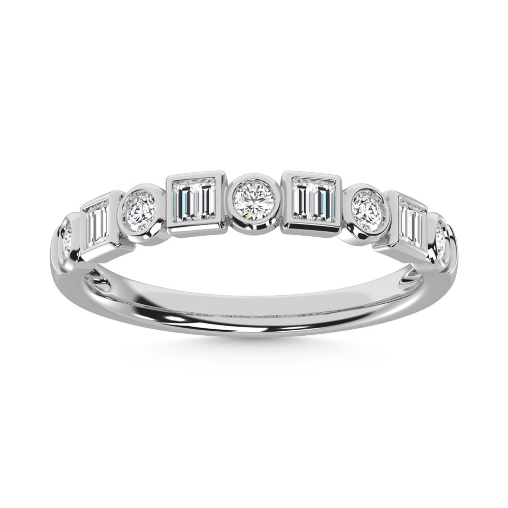 Diamond 1/5 ct tw Round and Straight Baguette Stackable Ring in 14K White Gold