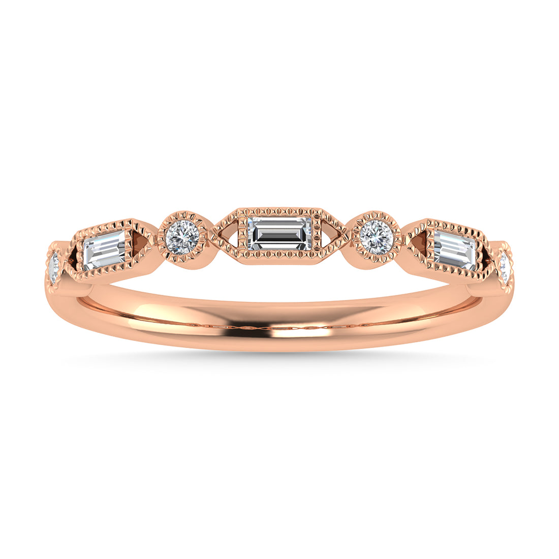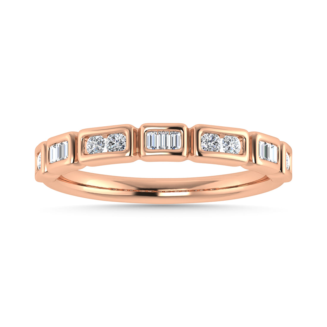 Diamond 1/5 Ct.Tw. Round and Straight Baguette Stack Band in 14K Rose Gold