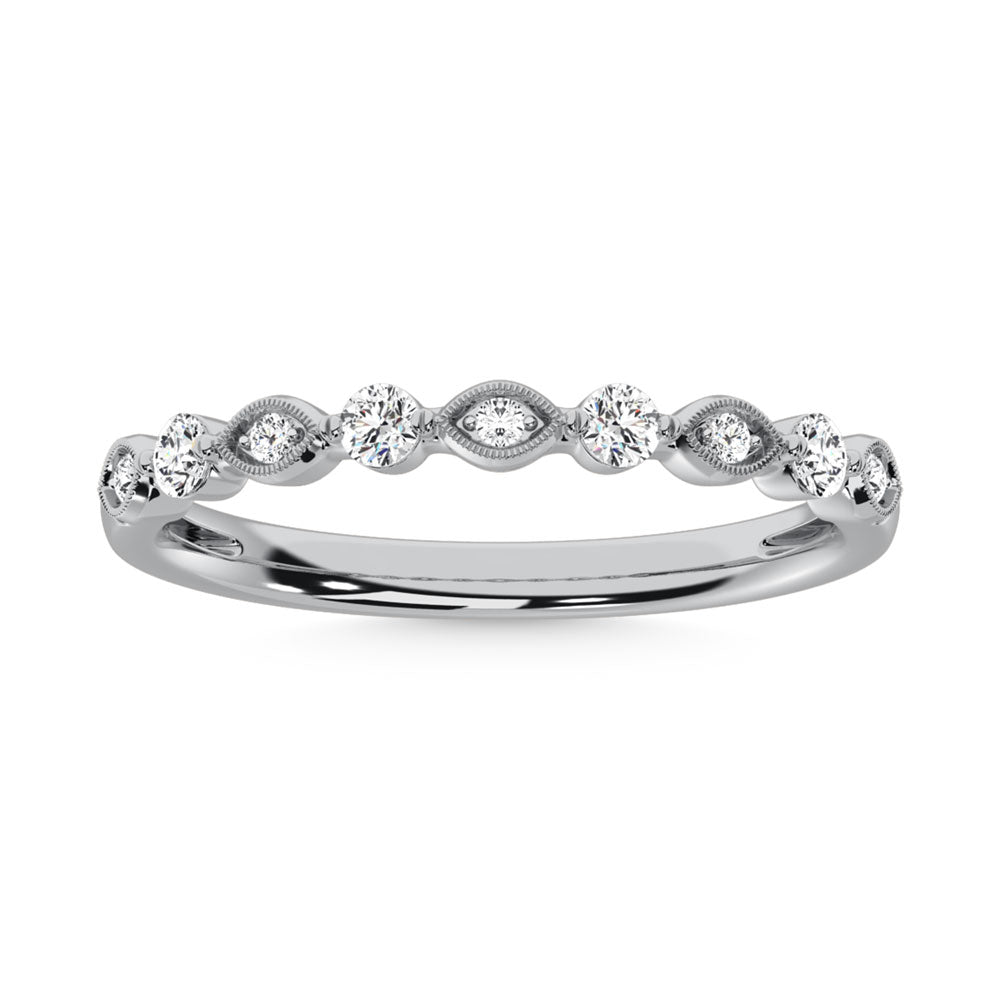 This Glamorous Stackable Band Fashioned In Cool 14K White Gold And Outline With Milgrain Frame....