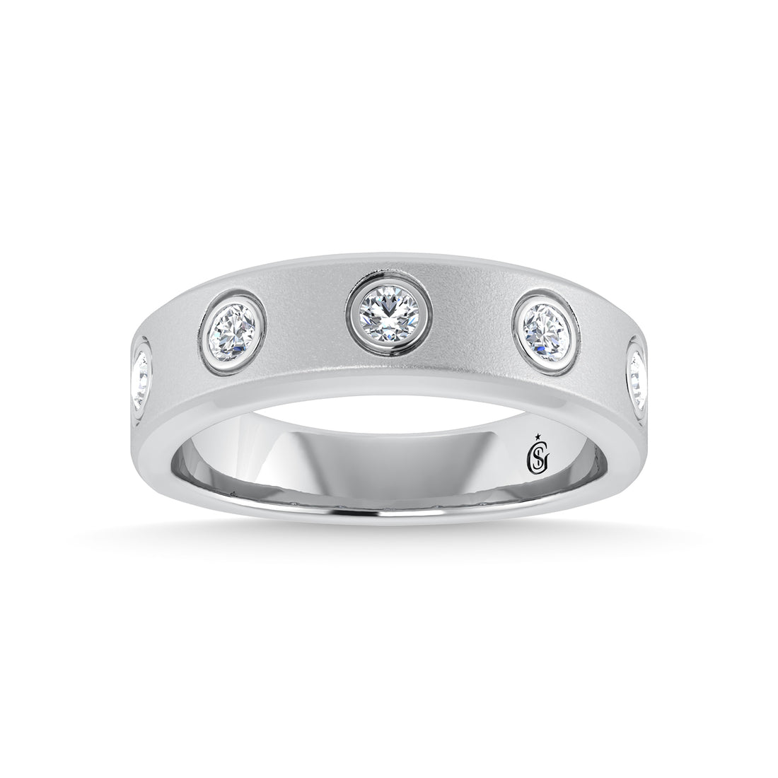 14K White Gold Diamond 1/2.Ct. Tw. Mens Machine Band