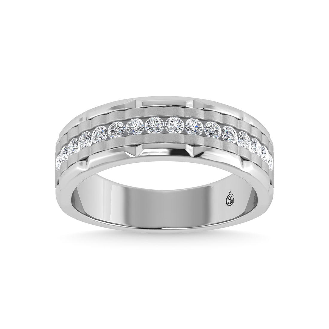 14K White Gold 1/3 Ct.Tw.Diamond Machine Mens Band
