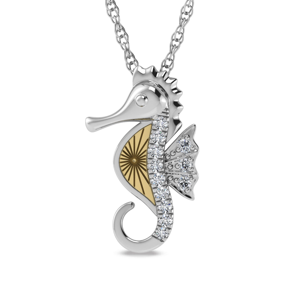 14K Two Tone Diamond 1/10 Ct.Tw. Sea Horse Pendant