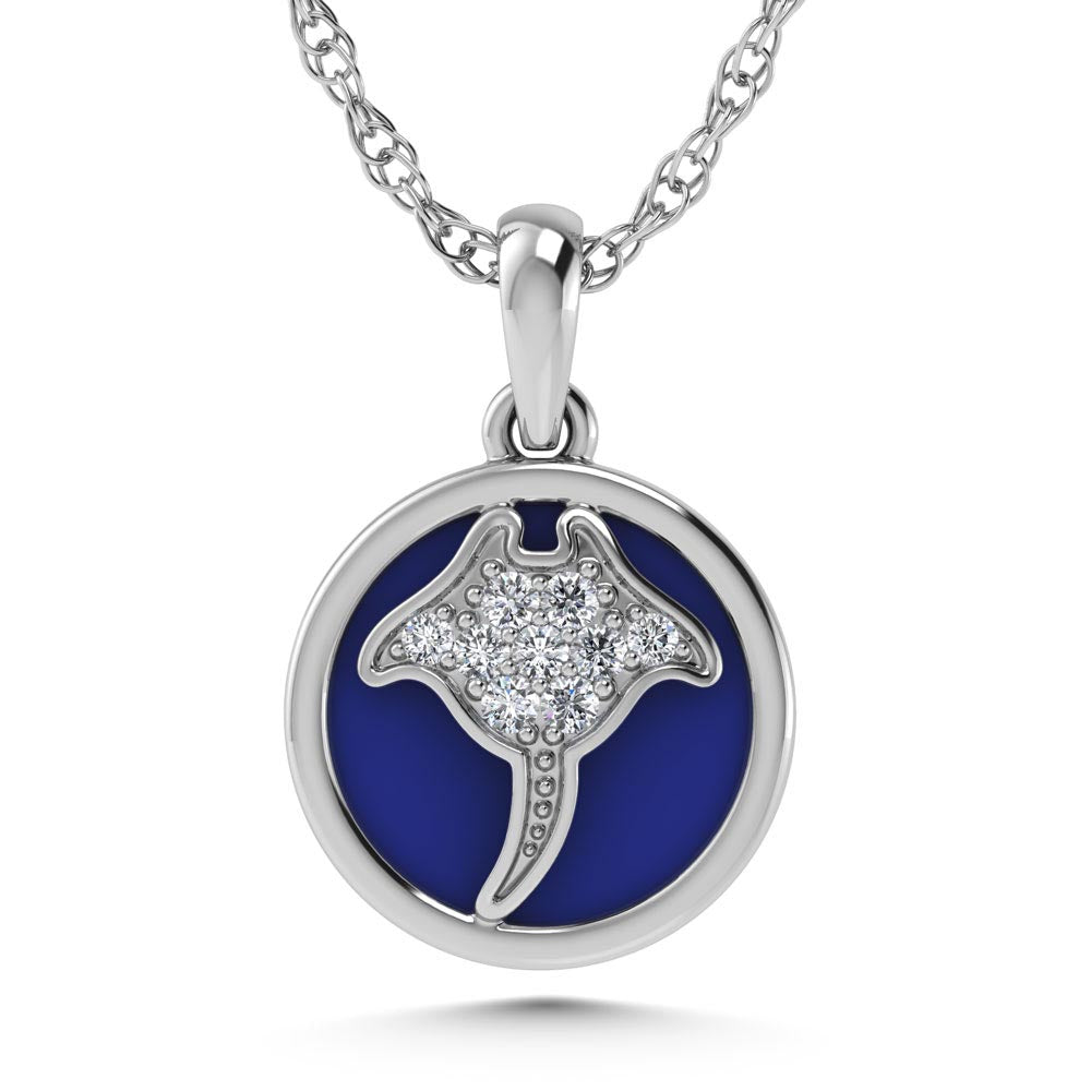 14K White Gold Diamond 7/8 Ct.Tw. Mother of Pearl Skate Fish Pendant