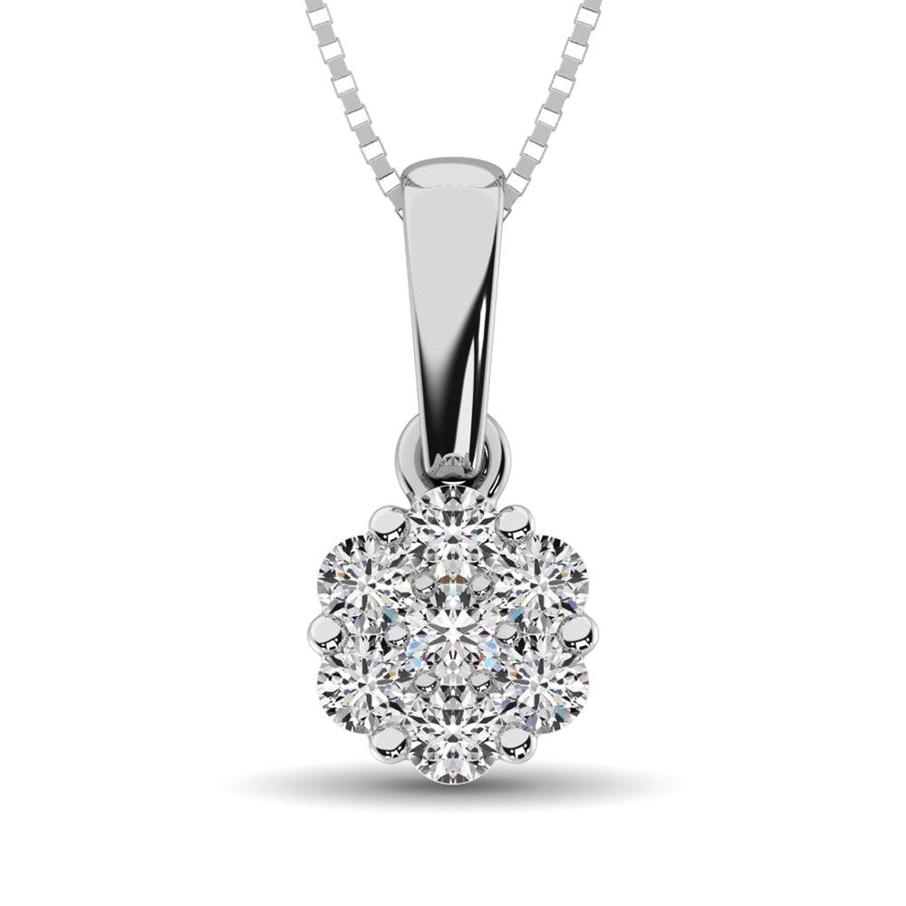 14K White Gold 1/4 Ct.Tw. Diamond Flower Pendant