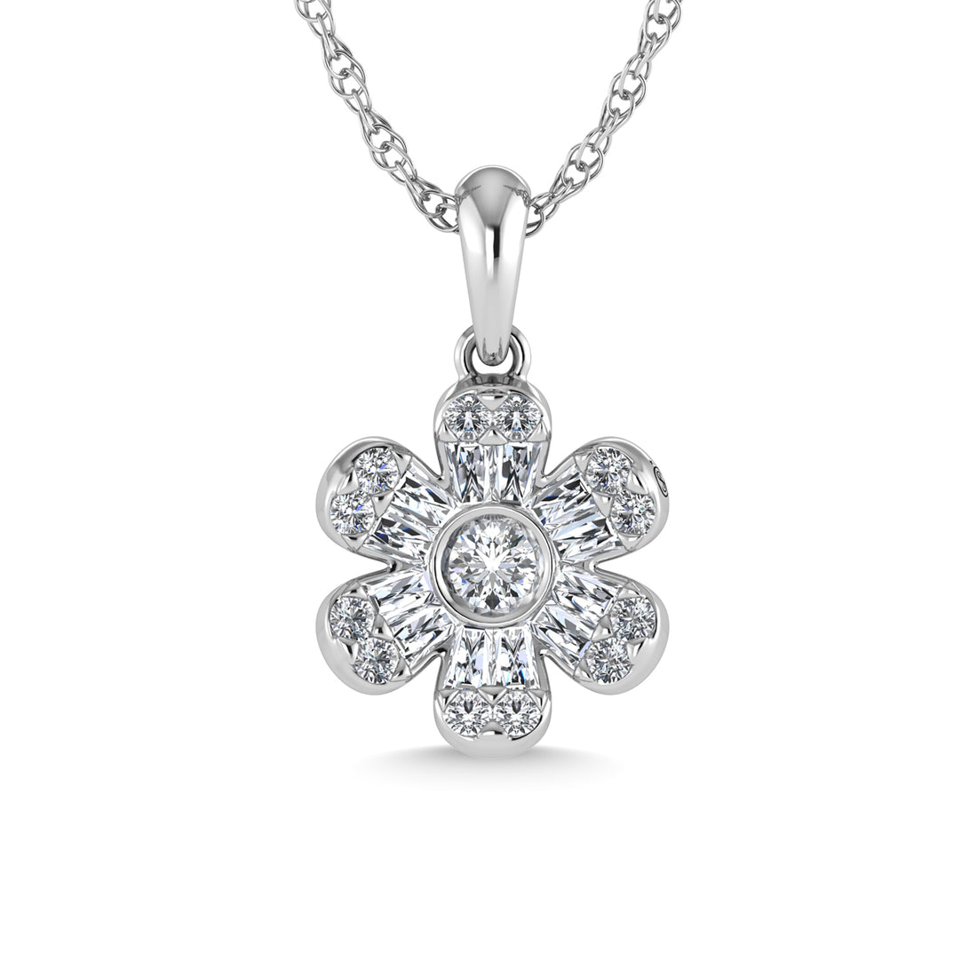 14K White Gold Diamond 1/3 Ct.Tw. Flower Pendant