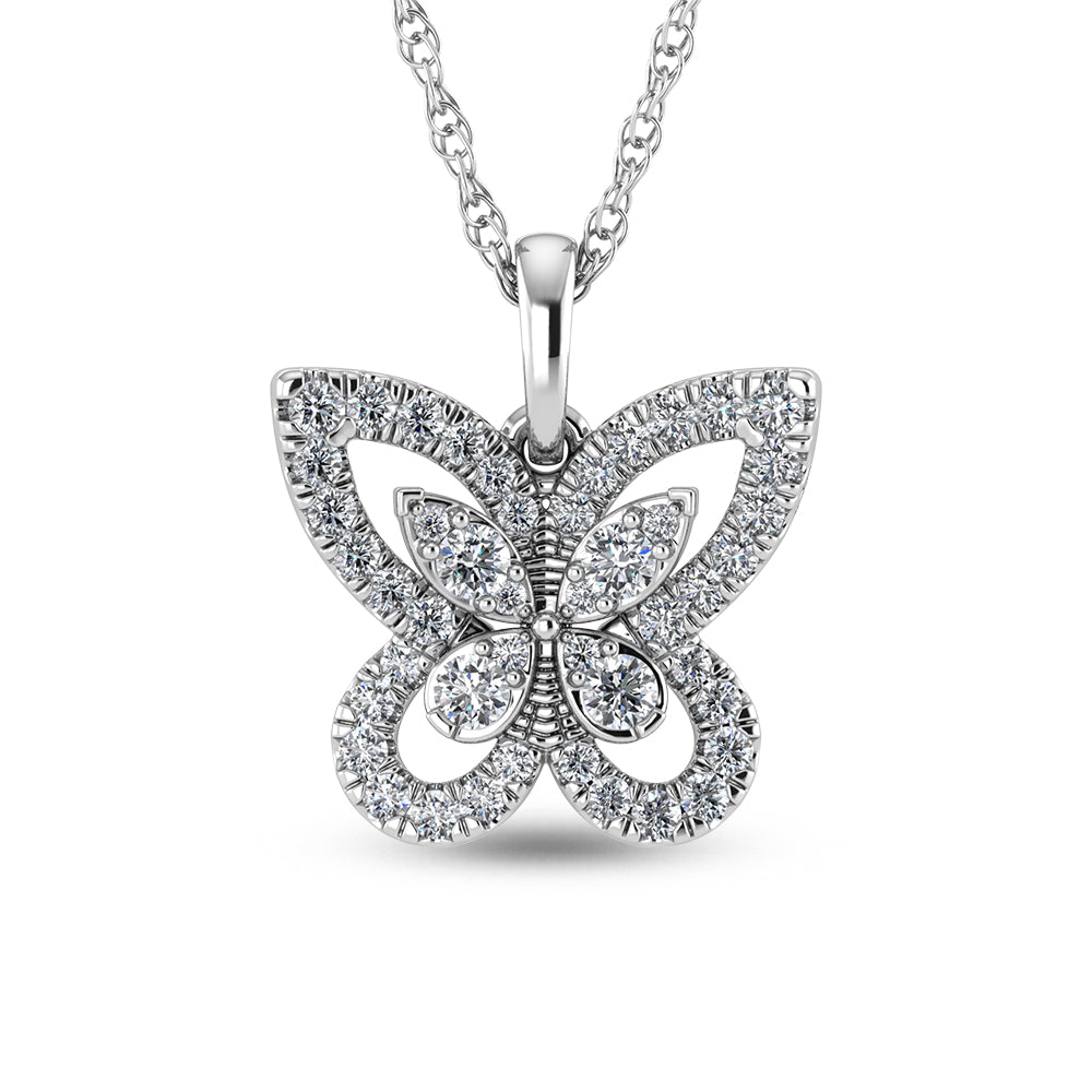 14K White Gold Diamond 3/8 Ct.Tw. Butterfly Pendant