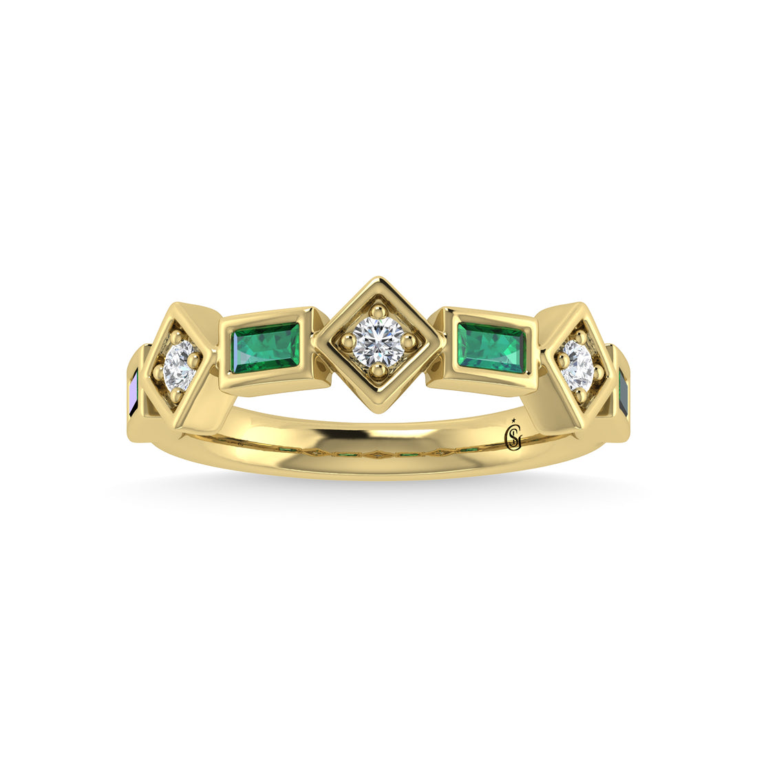 14K Yellow Gold Emerald & Diamond 3/4 Ct.Tw. Stackable Band