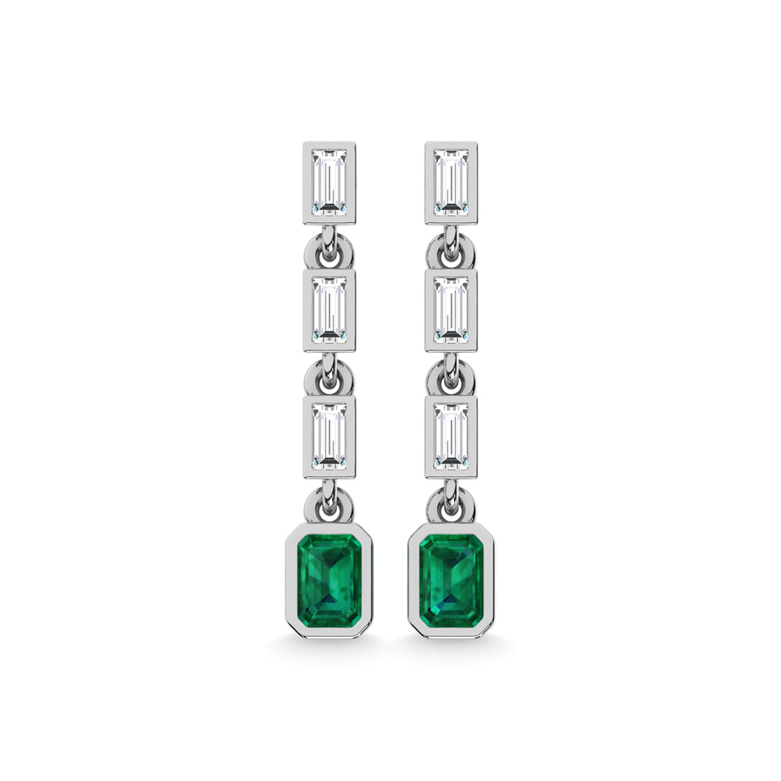 14K White Gold Emerald and Diamond 3/4 Ct.Tw. Fashion Earrings