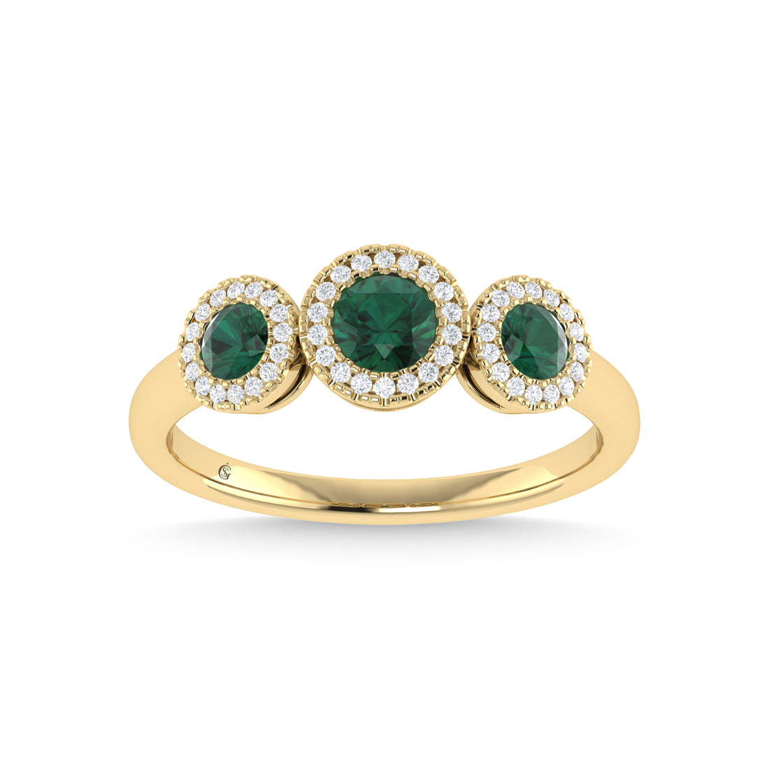 14K Yellow Gold Diamond and Emerald 1/2 Ct.Tw. Fashion Ring