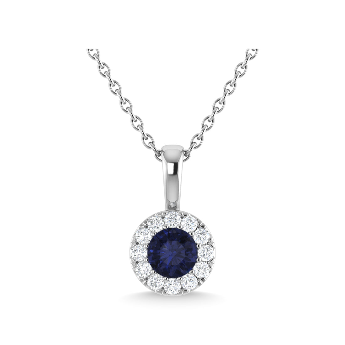 10K White Gold Diamond 1/2 Ct.Tw. And Blue Sapphire Necklace
