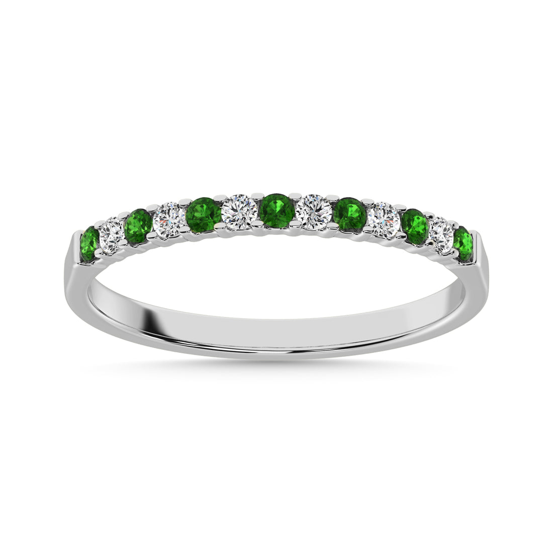 14K White Gold 1/4 Ctw Tsavorite & Diamond Machine Band
