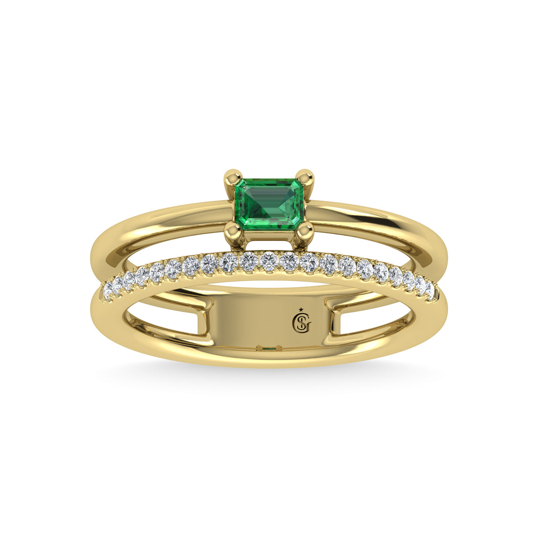 14K Yellow Gold Diamond and Emerald 1/3 Ct.Tw. Fashion Ring