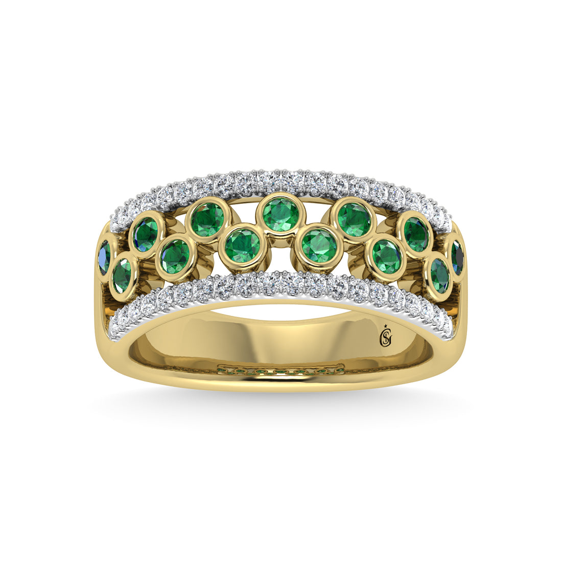 14K Yellow Gold Diamond and Emerald 1 1/4 Ct.Tw. Stackable Band