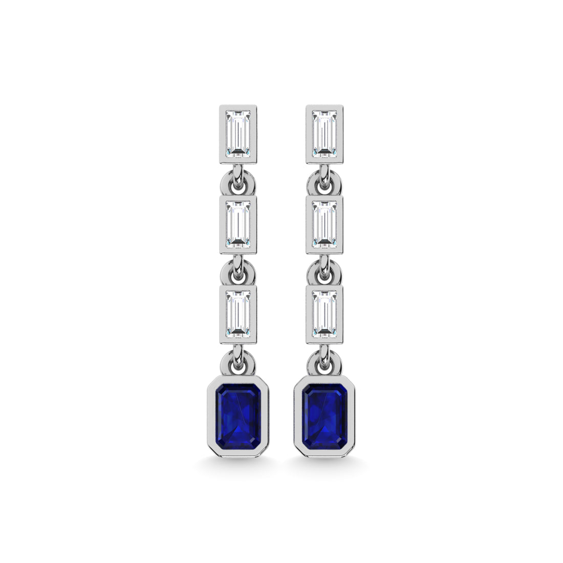 14K White Gold Blue Sapphire and Diamond 1 Ct.Tw. Fashion Earrings