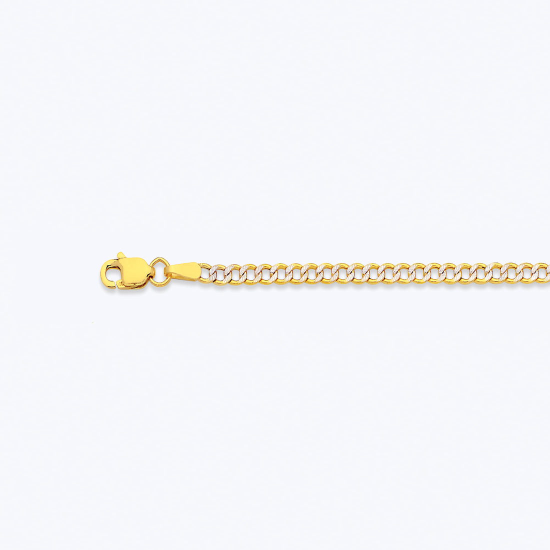 10K 2.5MM YELLOW GOLD SOLID PAVE CURB 7.5" CHAIN BRACELET (AVAILABLE IN LENGTHS 7" - 30")