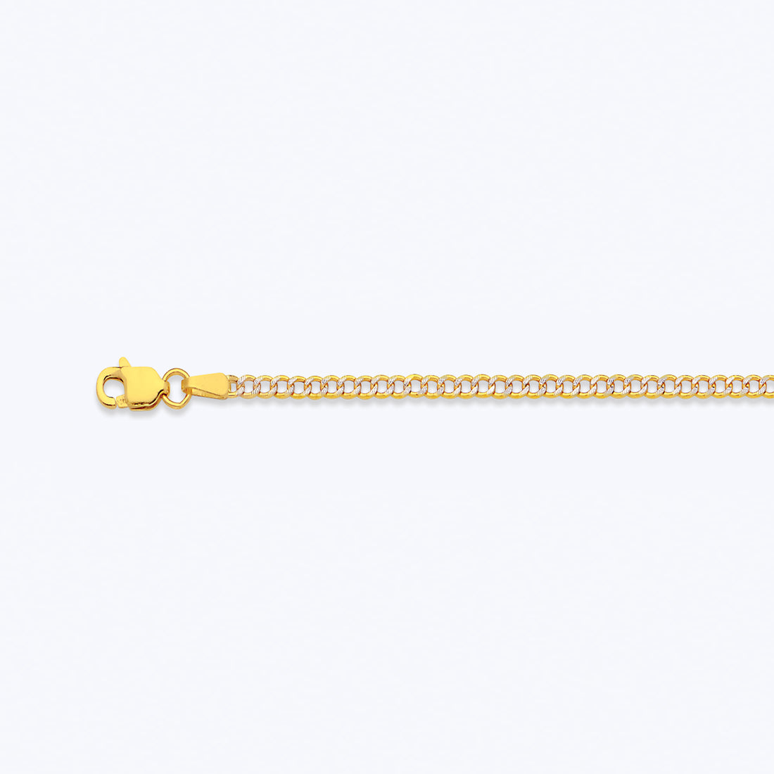 10K 2MM YELLOW GOLD SOLID PAVE CURB 7.5" CHAIN BRACELET (AVAILABLE IN LENGTHS 7" - 30")