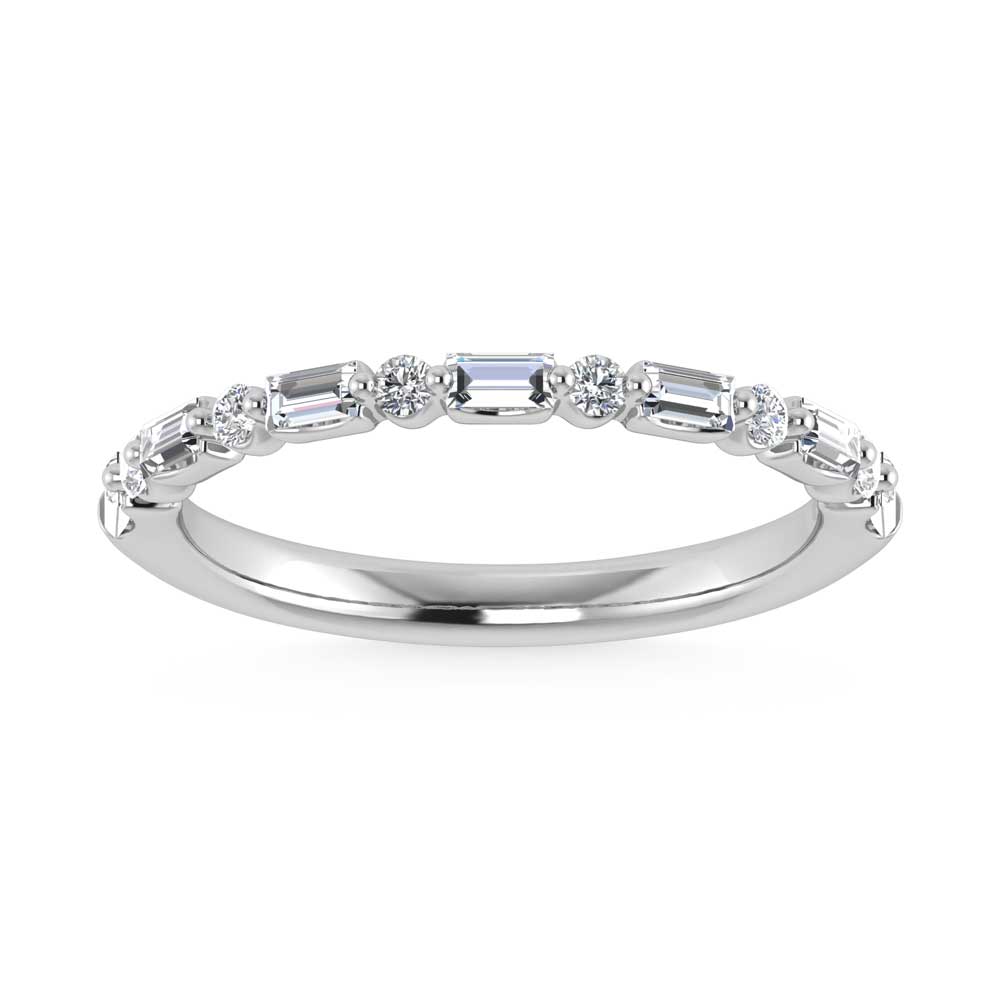 14K White Gold Lab Grown Diamond 1/3 Ct.Tw. Single Prong Set Round and Baguette Stackable Band