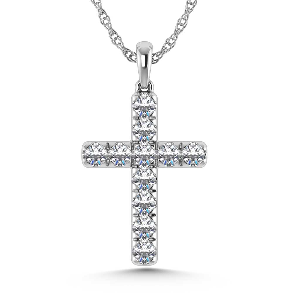 14K White Gold Lab Grown Diamond 3/4 Ct.Tw. Cross Pendant