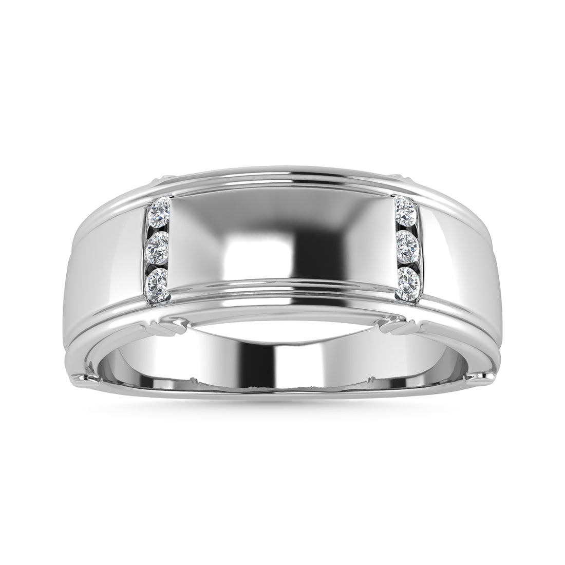 10K White Gold 1/10 Ctw Round Cut Diamond Mens Band