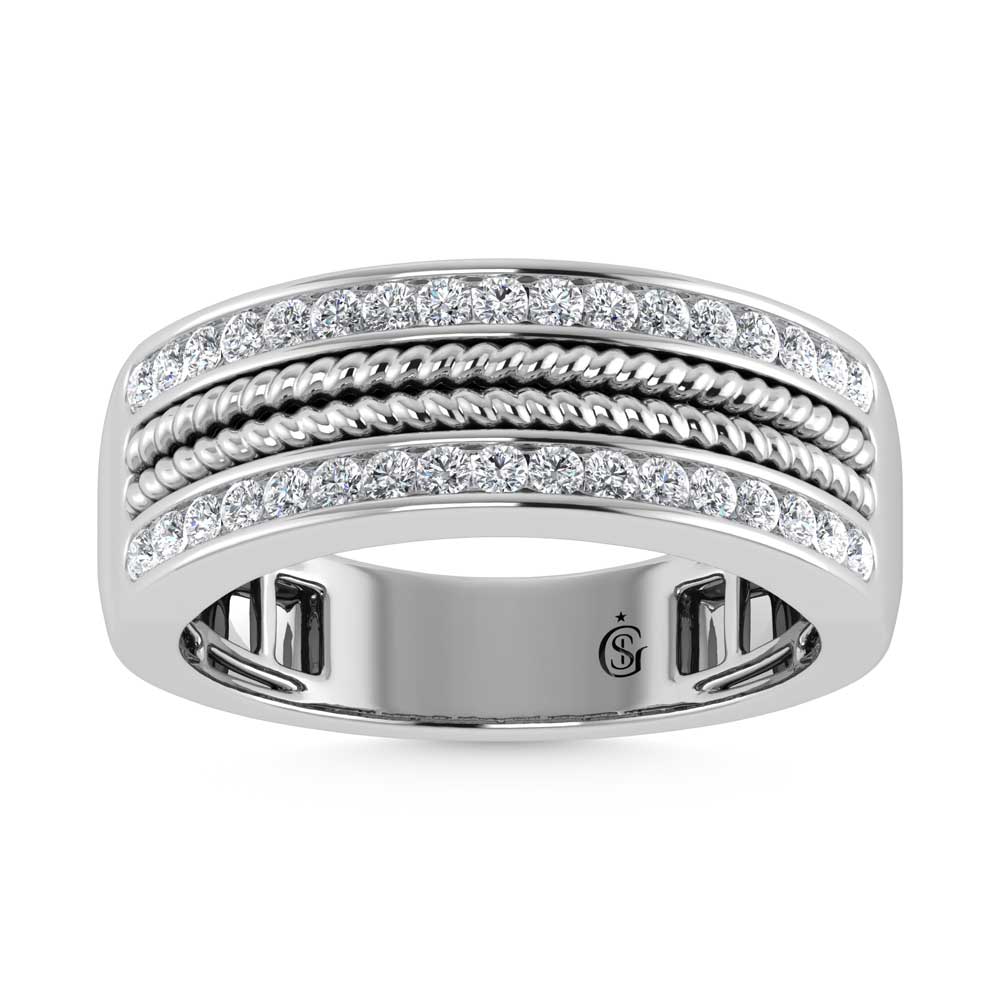 14K White Gold Diamond 3/4.Ct. Tw. Men�s Machine Band