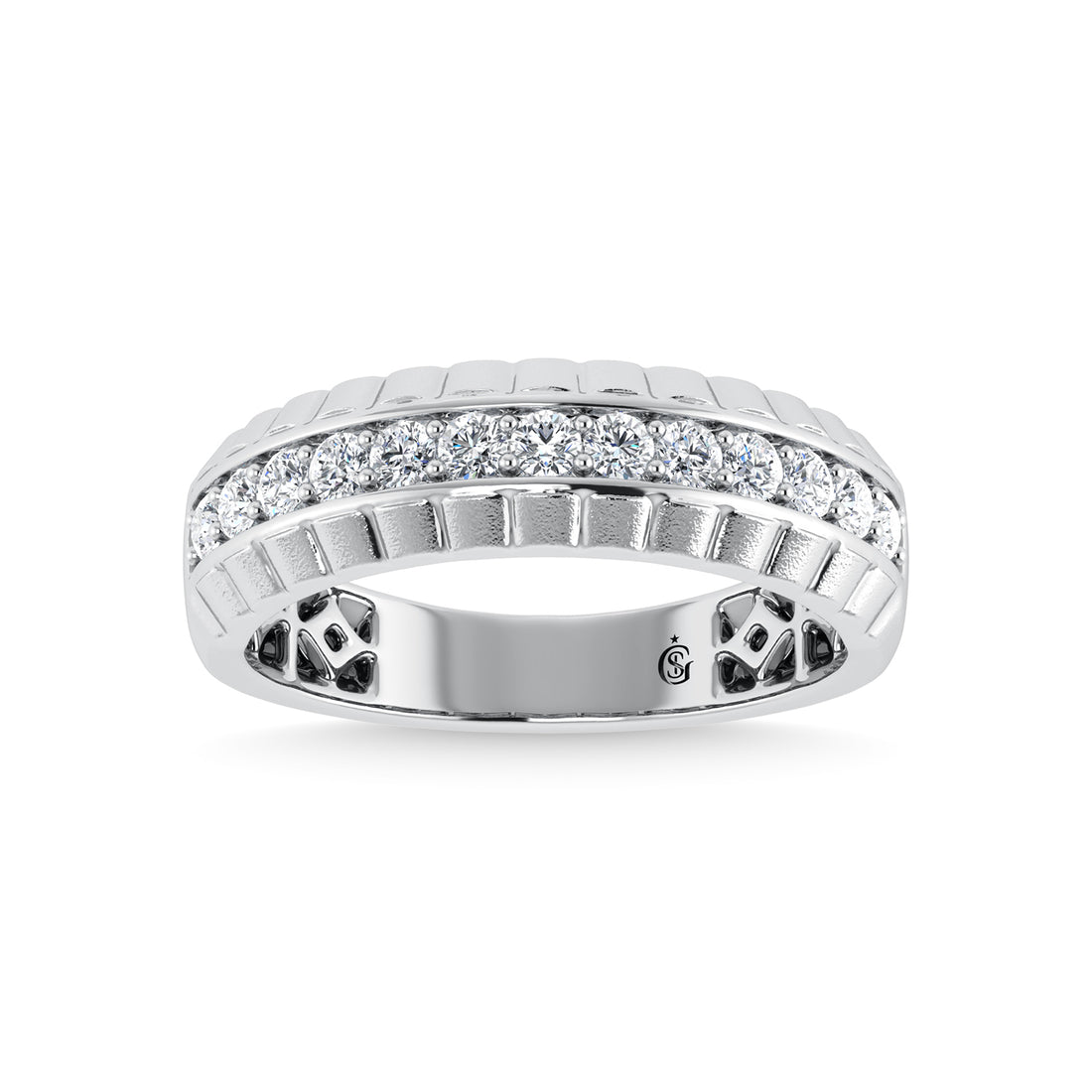 14K White Gold Diamond 1/2.Ct. Tw. Mens Machine Band
