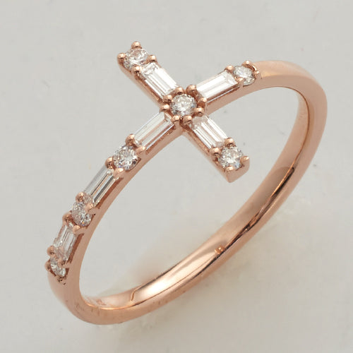 14KR 0.35CTW BAGUETTE DIAMOND SIDEWAYS CROSS RING
