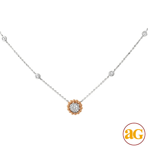 14KW+R 0.25CTW DIAMOND NECKLACE - ROUND CLUSTER