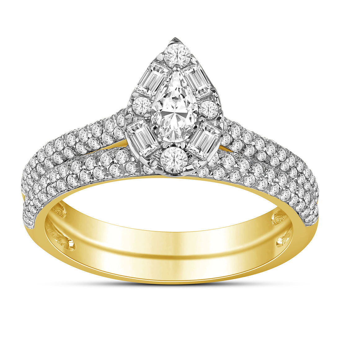 14KW 1.05CTW DIAMOND PEAR CLUSTER BRIDAL SET