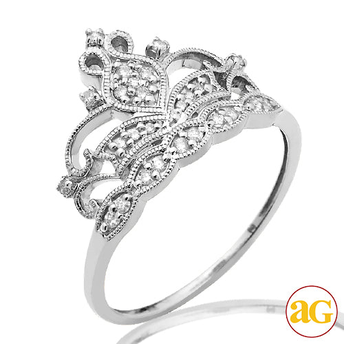 14KW 0.15CTW DIAMOND PRINCESS CROWN RING