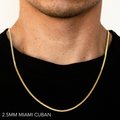 10K 2.5MM YELLOW GOLD SOLID MIAMI CUBAN 24" CHAIN NECKLACE (AVAILABLE IN LENGTHS 7" - 30")