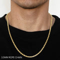 10K 3.5MM YELLOW GOLD SOLID DC ROPE 22" CHAIN NECKLACE (AVAILABLE IN LENGTHS 7" - 30")