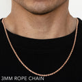 10K 3MM ROSE GOLD SOLID DC ROPE 22" CHAIN NECKLACE (AVAILABLE IN LENGTHS 7" - 30")