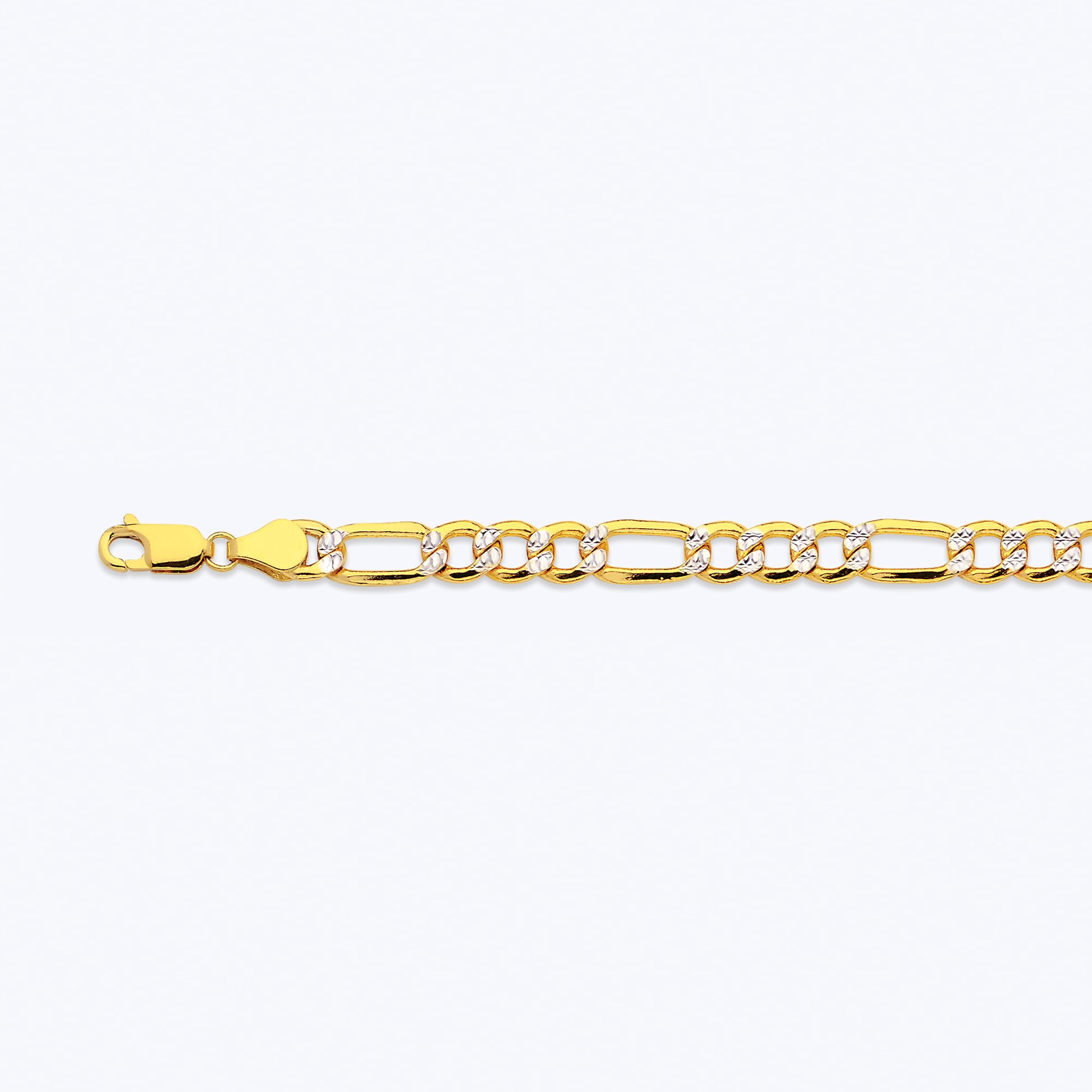 10K 6.5MM YELLOW GOLD HOLLOW PAVE FIGARO 8" CHAIN BRACELET (AVAILABLE IN LENGTHS 7" - 30")