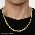 10K 7MM YELLOW GOLD DC HOLLOW ROPE 22" CHAIN NECKLACE (AVAILABLE IN LENGTHS 7" - 30")