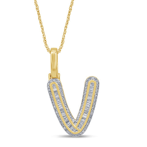 10KT 0.40- 0.47 CT D-BAGUETTE INITIAL " V "