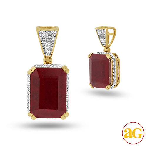 10KY 0.15CTW DIAMOND PENDANT WITH 8.30CT RUBY