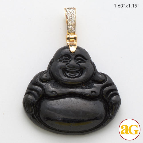 10KY JADE BUDDHA PENDANT - 0.10CTW DIAMOND BAIL