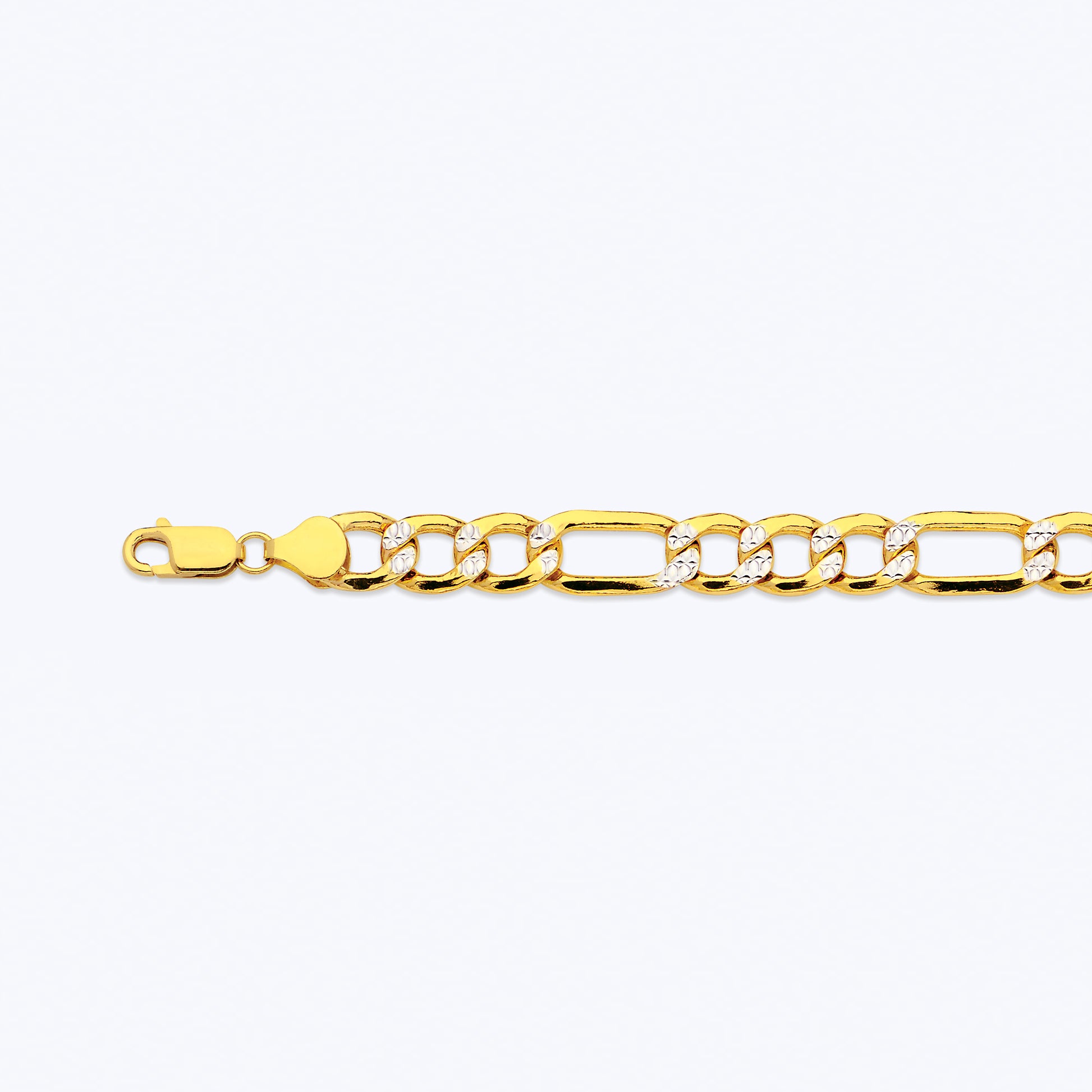 14K 10.5MM YELLOW GOLD HOLLOW PAVE FIGARO 8.5" CHAIN BRACELET (AVAILABLE IN LENGTHS 7" - 30")