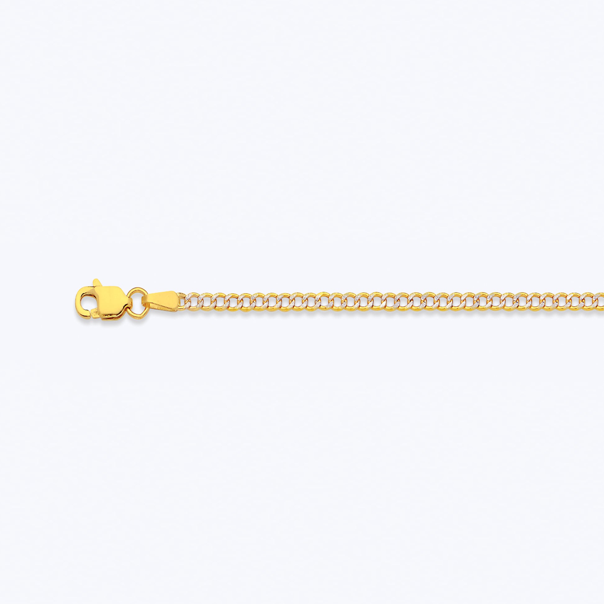 14K 2MM YELLOW GOLD HOLLOW PAVE CURB 8" CHAIN BRACELET (AVAILABLE IN LENGTHS 7" - 30")